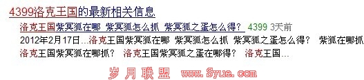 大家可以到百度里搜索4399洛克王国,通过上图我们可以发现“4399洛克王国”连起来是变红的;“洛克王国”是变红的;“洛克”也是变红的。我们就可以得到一个结论,那就是百度分词库里,4399是一个词,洛克是一个词,王国是一个词,4399洛克王国是一个词,洛克王国也是一个词。因为4399洛克王国是4399游戏网独有的一个游戏名。所以才造出了这个词,也就被百度词库给索引到了。由此可以得出结论,我们再写有数字和中文组合的产品相关的文章的时候,我们需要给文章的内容里出现这个产品名的全名,也需要出现这个产品名分词后单个词。我们总是在说关键词的密度,其实这个密度不是那一个全称的密度,还可以把分词的密度也计算到一个页面里。这样的组合方式可以常用在写软件版本,网站版本里。比如什么什么1.0版本等。