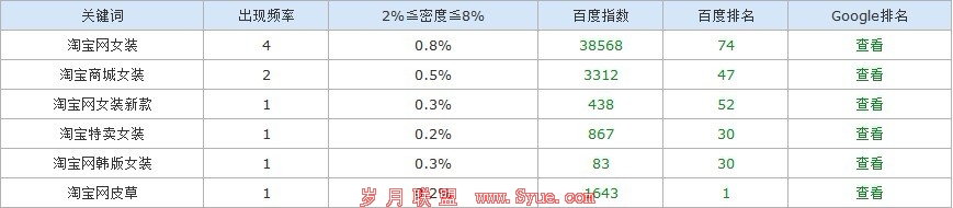 过年期间没管过网站,年后排名严重下降,日IP10几个,遂改为API站,外加更改网站标题更换关键字。API站内容不用管了,只剩下发外链了。考虑到做的是淘宝网女装这类竞争很大的词,外链策略采取的是多发锚文本外链,买了10几个链接,每天用群发工具群发PHPWind个人主页留言,刷锚文本外链。经过一周百度更新,各关键词有了排名,上图: