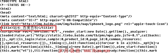 这里我们就在百科上输入站长,来看看词条的页面标签形式,截图为下图。我们看到了titlle的形式为词条_百度百科,而没有看到我们所熟悉的keyword与description两个标签。很显然百度告诉我们一个信息,tittle的抒写形式核心关键词+“_”+站点名称,而不是以前关键词成堆的标题。还有一点就是百度已经降低了另外两个标签的权重,并没有原来算法那样那么看重这两个标签。