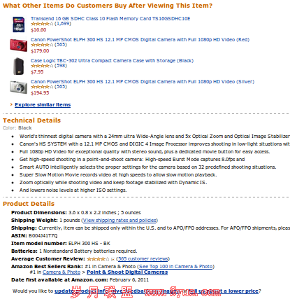 可以看到上图中被明确归为了三块,且清晰指出了它们分别是关联购买、技术细节与商品细节。相比之下,不少电商网站最上方是产品图片与价格,然后第二块区块开始,就把产品参数、产品描述及大量未必有用的产品图片依次堆在一起,无疑就差得多了。(上图中Product Details一块多数内容都是自动生成,而同时对用户和SEO有价值的内容,这块是被多数电商网站所忽略的。)