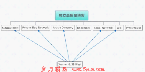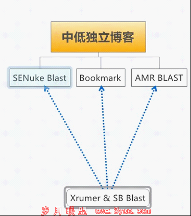 接着第二层中低质量博客 , 第二层也是独立博客 , 但内容质量稍差 , 做它一堆 , 可以伪原创内容后批量发布上去。这一层的博客不指向主站,只指向第一层的高质量独立博客。这种类型的网站,你可以多 spam 一下。当然 , 你的 moneysite 依然要做外链建设,包括xrumer的blast,不过这种 blast 会有所不同,这里难以细说。 另外还可以参照第一层的博客外链方式, 帮moneysite做,效果也是不错的。以上提到的外链建设方法,锚文本的使用也很重要。说到这里真不知道大家明不明白,但我也只能浅显的解释,具体要做的时候才知道。总而然之,就是get more backlinks to your backlinks。以上链轮都可以用外链软件完成,除了独立博客需要你手动建设。