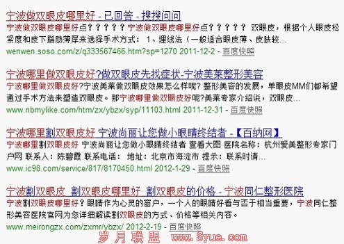 (图例:“宁波做双眼皮哪里好”结果页面 完全匹配与部分匹配的差异)