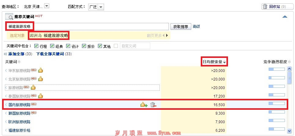有了筛选功能后,您可以迅速查找物料,并及时对不满意的关键词进行优化,省时又省心!新凤巢操作宝典系列之五——关键词推荐,助您轻松定位优质词,旅游行业在夏季正是火爆时节。随着夏日的旋热风暴,陈女士公司的推广也在跟着这股热潮如火如荼的飞速增加。为了趁着这黄金时期, 让推广质量更上一层楼,陈女士决定增加对关键词的投入。这就需要找到可以带来收益的关键词进行添加。 想关键词难,找到好的关键词更难,那么陈女士是如何做到快速定位优质关键词的呢?具体案例请参见经典案例之: