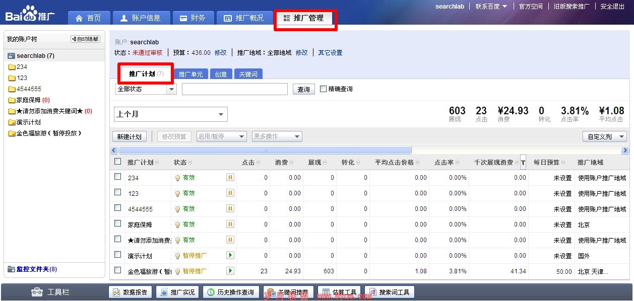 第一步,在推广管理的推广计划下,点击“新建计划”按钮:
