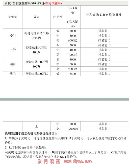 3、 SEO的价格参考。现在很多不懂SEO的客户对网站优化的价格是首先要考虑的因素。这个方面我们在优化方案中也是要得到很好的体现,制定出客户满意和自己满意双赢的价格表单。下面展示一份自己设计的seo价格表单。