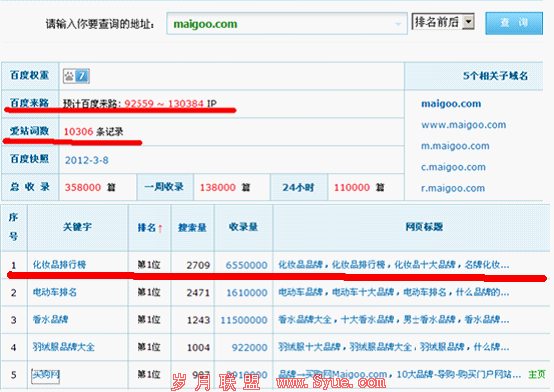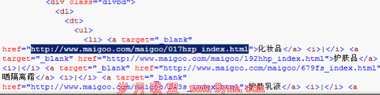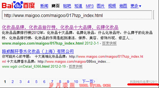 然后我们以“化妆品排行版”为例给大家分析下爱购网的用兵之道。先把要分析的网址贴出来http://www.maigoo.com/maigoo/017hzp_index.html