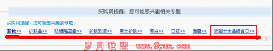 从上图可以看出首页直接给了这个内页链接,这个好处就不用我啰嗦了吧,内页直接分享了首页的权重,时间越长积累的权重越高。这里他用了“化妆品”作为锚文本,应该是出于页面美观的需要,要是换成“化妆品排行榜”就更完美了。