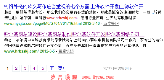 大家看下这个站,中申科技这个站,我昨天就用那些所谓的刷关键词软件刷了下,结果就这样了,降到最后一位了,还有一些我的朋友的网站,现在都没了,前几天都是刷上来的,所以我建议,暂时停下,观察下再说。还有就是站内优化也不要太过了,因为都是敏感的,稳稳再说,前几天我刚把一个老域名换上新程序,结果今天也被降权了,看样老域名也不幸免。