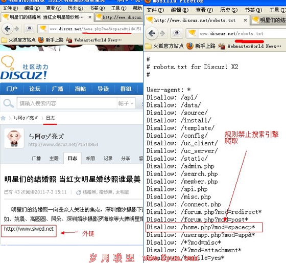 从上图可以看出来,DZ的robots.txt里面禁止了搜索引擎爬取日志页面,也就是说在DZ的日志里面留外链是没有效果的。以上为小编整理的五种外链误区,希望对新手站长们会有所帮助,不要盲目的去做外链,也许你做的外链是这里面的一种甚至多种!