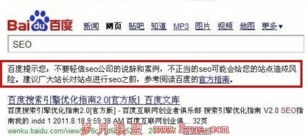最近SEO界吵的比较火的就是这个SEO提示,不过这次百度语气稍加缓和些了。前段时间的那个提示才叫雷人呢?具体情况是这样的,大家看图片