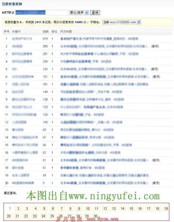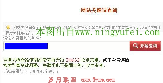 图2中的查询网址与图1相同。尽管工具的查询只能通过公式来演算,不过一个拥有2413条百度排名关键词相信其流量也不会太差。