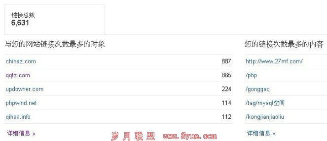 继续返回首页控制台,在下方:指向您网站的链接选项,可以非常直观的看到咱们网站的外链分布情况(这里指的是超链接,文本除外)、对于网站优化人员来说,是必须要了解的一个数据,如下图: