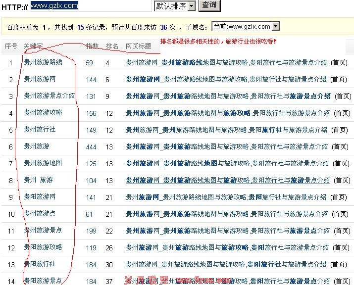 从上图我们得知,外链增加速度都是很稳定的,没有大起大落的情况,大部分都是软文转载的,只不过排名掉的原因最大的是空间不稳定,内容都是具有可读性很高的,还是相关性的,排名浮动不是很大,继续看下关键字排名的情况吧: