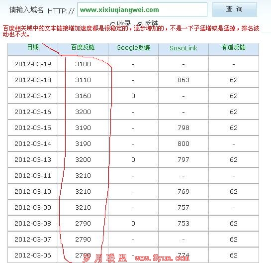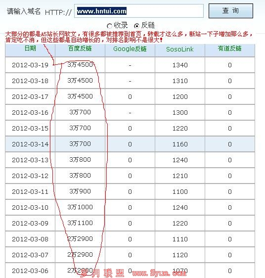 这个域名就不怎么陌生了吧,大概就是A5软文外链中的一个网站,是收取一定的费用才能实现,写的内容都随便就能通过,都是自己人,只不过让其他网站转载而已,在给网站带来一些高质量的外链,这个网站收录很少,但外链很强大,排名还是不错的,继续看图:
