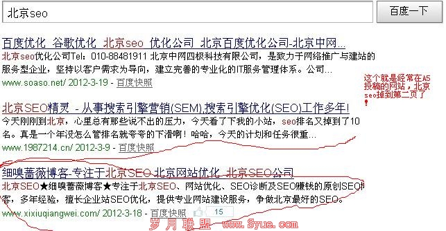 博客年龄也是好久的了,算是老站了吧,这个博客做了地区性的SEO,北京seo排名在13位,内容都是自己码字的原创,也是相关性很大的优化内容,新手可以去拜读下,其实有些内容真的很不错,这个博客也曾经出现在首页保持一段时间,大概原因是服务器不怎么稳定,笔者习惯性去搜索,偶尔有打不开的现象,不排除自己的网络问题,现在网站有点稳定了,慢慢排名也很快恢复的,请看其余的截图: