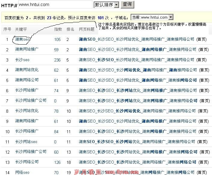 一看域名大概意思就是湖南推,目标关键字是湖南seo,站长从一开始注册域名以后增加内容,初期原创的也很多,现在排名稳定了,有些原创,有些是采集,内容还是相关性的,不是随便采集什么东西都能放在网站,站长很积极的,A5软文投稿都是每日一篇,通过率也很高的,在看下网站其它情况吧: