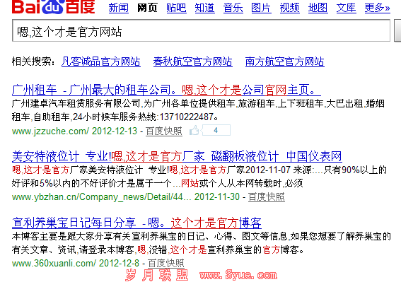 相信做seo这块的没人不知道zac和他的博客。之前他的博客标题有这样一句话,嗯,这个才是官方网站。这也无可厚非。人家是名人,有可能有盗版博客,这样做好让用户认清哪个网站是真正的zac博客。不过我后来发现很多网站的标题也加了一句嗯,这个才是某某官方网站之类的话。在我看来这些网站这样写标题的目的不是为了说和其他网站区别,而是觉得说zac老师这样写,那我们也这样写,排名说不定好呢。实际上你搞清楚人家那样写的目的了吗