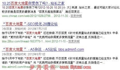 6月中下旬,百度在毫无先兆情况下大面积K站,被SEOER们称为“百度大地震”。事后百度表示:百度打击低质量网站的新算法已生效。这也是继谷歌频频升级熊猫算法之后,百度首度大规模地对网站内部“内容只是无意义穿插关键词”的“内容农场”日益泛滥亮剑出击。