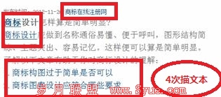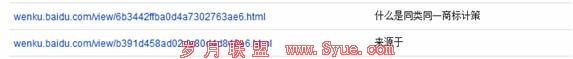 特征三总结:百度可以读取URL前面的词语。图九描文本为:什么是同类同一商标计策。图十跟图十一的描文本均为来源于(注册商标网感觉是因为URL之前的词语是以结束符号,