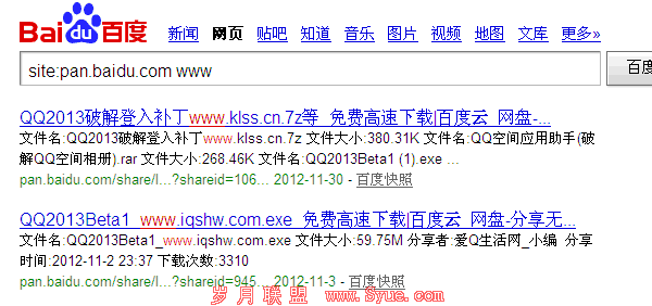 百度网盘是今年下半年开始上线的,是为用户提供文件的网络备份、同步和分享服务的地方。如图我们site:pan.baidu.com,你会发现,这里的内容页会收录呈现。