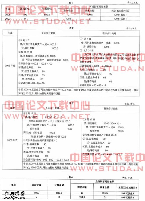 【关键词】 可供出售金融资产; 应纳税暂时性差异; 可抵扣暂时性差异; 发生与转回