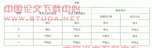 从附表中不难看出,当形式上的独立与实质上的独立不相一致时,注册会计师评价的依据是实质上的独立而社会公众则更多考虑形式上的独立。