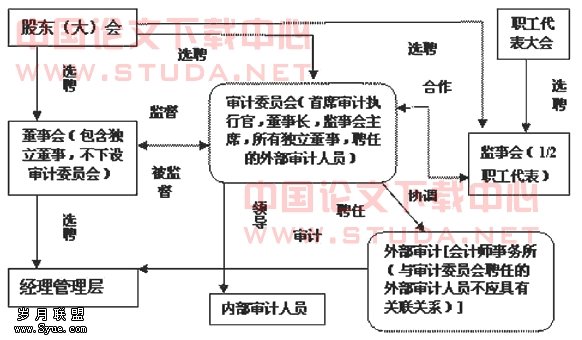 这种突出的提升内部审计地位的做法,其实围绕的一个实质问题就是最大限度的提高内部审计的独立性。基于这种独立性原则和我国特有的国情,笔者构建了具有中国特色的内部审计参与公司治理的架构(如图1)。