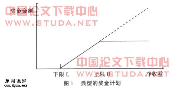 图1是一个典型的奖金计划,从中我们可以直观地看出,经营者盈余管理的动机来源于奖金计划。如果净收益偏低(即低于L),经营者就会想办法进一步降低利润,这称作注销巨额资产;同样,如果净收益偏高(超过了U),也会促使经营者选择降低报告净收益的会计政策和程序,因为超过盈余上限的那部分净收益会永远失去带来奖金的机会;只有当净收益介于L与U之间时,经营者才会采纳增加报告净收益的会计政策和程序。