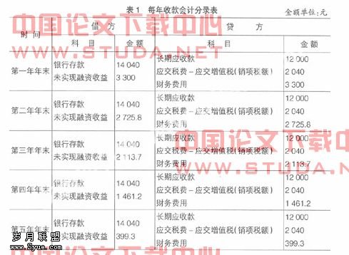 第三步:依据上述计算结果,编制各年分期收款时的会计分录见表1。