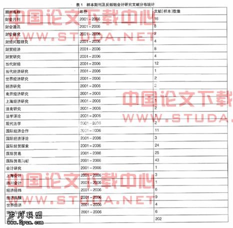 【摘 要】 本文以2001-2006年间国内27种、贸易、、期刊涉及反倾销及反倾销会计等内容的202篇相关为样本,按期刊进行了序时计量和分类统计,着重从反倾销及反倾销会计相关研究文献类型、研究内容和这些样本文献五年引用文献状况进行了统计与分析,揭示了我国反倾销及反倾销会计研究的总体状况,以及会计领域在反倾销研究中所涉及的一些前沿问题,并得出几点启示。