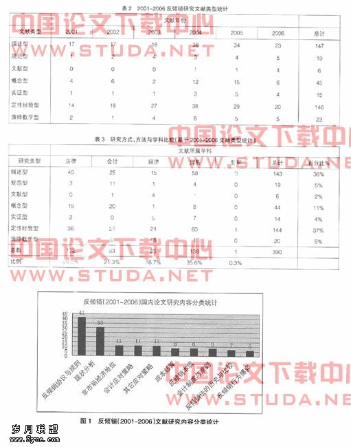 表2说明,反倾销及反倾销会计相关研究文献大多集中在规范型研究文献中,而实证型(含演绎数学型)总共只有38篇。可见,科学地运用实证方法研究我国企业应对反倾销问题应引起关注。