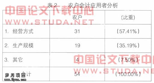 通过对应用者进一步的调查发现(见表2):1.生产经营方式的多样性刺激了农户会计的应用(57.41%)。南昌县的农户主李某说:“我家人口较多,所以农活也多。有十亩水田,承包了一个山地,另外还开了一个小型的大米加工厂。有时候也实在忙不过来,所以,我必须搞清楚,是什么活赚钱,什么事不赚钱。”赵某的情况与李某的情况不完全相同:“我家人口少。儿子也在县城成家了。我和老伴也不想干太多的农活。说实话,过几年也干不动了。我以前是村会计,所以,我就算算账看看,琢磨一下这个事。”2.生产经营规模的扩大促使农户运用会计加强经营管理(35.19%)。新建县的张某是一个四十出头的中年汉子,他与村签订了十年的鱼塘承包合同,鱼塘规模较大,按照他的经营模式,每年需要投入将近七八万元的资金。所以,他认为“这对于我家是一个压力,必须账目清楚”。尽管文化水平不高,但在上初中的女儿帮助下,账目总算是建立起来了。