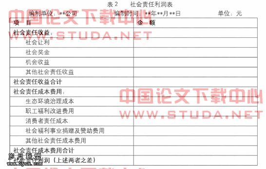 由于企业的“社会责任收益”和“社会责任成本”不一定相关联,所以社会责任利润不一定等于收益减成本。社会责任利润的数据仅反映在会计期间内企业承担社会责任的盈亏情况,其数值大并不完全意味着企业承担的社会责任一定多,其数值小或者为负数并不意味着企业没有很好地承担社会责任。