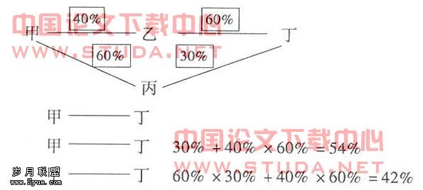 1、多层控股。例1:假设甲、乙、丙分别为三个公司,它们之间的持股关系如下图: