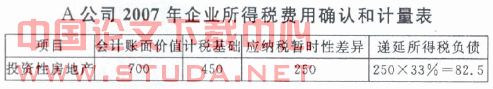 (2)2007年12月31日所得税调整(企业所得税暂行条例规定企业所得税税率33%),其企业所得税费用确认和计量表如下:?