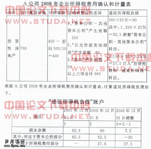 (4)2008年12月31日所得税调整(企业所得税法规定2008年1月1日起企业所得税税率25%),其企业所得税费用确认和计量表如下:?