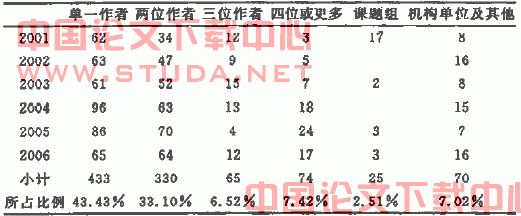 在977篇中,平均每篇论文的作者数与国内其他会计刊物相比要稍高,与国外会计研究刊物相仿,显示出合作研究是国内外学术活动的主流,也说明高水平论文通常需要大家共同合作努力完成。如表2所示:?