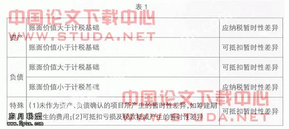 2.比较资产、负债的账面价值与计税基础,如果二者之间存在差异,应将其区分为应纳税暂时性差异和可抵扣暂时性差异(如表1所示,具体“账面价值”与“计税基础”的确认及产生差异的原因这里不再赘述)。