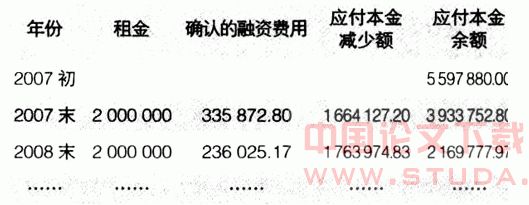 (3)2007年未确认融资费用分摊及支付租金的会计处理