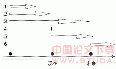 会计计量要对经济业务进行反映,必须考虑和分析它的这种经济周期特性,我们很难也不可能对经济周期的全过程进行记录和反映,尽管现行会计计量无法做到数学意义上的对过程的连续性反映,但是会计可以通过描述和表示经济业务的时间起点和终点来给出对经济业务的一个大体上完整的反映。会计反映是一种主体与客体之间的联系,主体和客体之间存在一个相对时间的问题。这样,会计作为反映者在对被反映者进行计量的时候就会产生一个时间立点问题,所谓会计计量的时间立点就是会计作出计量的那一时刻相对于经济业务的发生、发展和终结这一过程而选定或者所在的相对时间点。因为现行会计计量方法的计量行为总是与此时此刻相联系,因而会计计量都是以现在为时间立点的。以现在这一计量立点为标准,按照经济业务的时间起点和终点所在的时间域,可以把经济业务划分为六种:过去——过去:过去——现在;过去——未来;现在——现在;现在——未来;未来——未来。对这六种经济业务进行归类,可以得出三个大类,即开始于过去的、开始于现在的和开始于未来的三类经济业务,如图1所示:过去是现在以前的时间跨度,未来是现在以后的时间跨度,对于现在,我们假定它的长度是完成一个基本的会计计量的最短时间,即相对于经济业务过程来说是一个计量的瞬间,在上述六种业务中,现在——现在这种业务从开始到结束在一个计量的时间单位内完成,现实中可能比较少见。