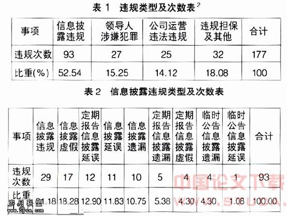 以上资料显示,在107家违规上市公司中,有多家上市公司存在多次违规记录,其中*ST金荔的违规事由就有8项之多。另据报道,在证监会福建监管局的巡回检查中,中国武夷(000797)被查出存在大股东长期占用巨额资金、公司治理不良、信息披露不规范和会计核算违反规定等4个大项、17个小项的违规行为。从这里不难看出,在各种违规中信息披露所占的比重最高,而信息披露违规又和会计信息披露违规是密切相关的,甚至在很大程度上可以说是会计信息披露违规。尽管造成会计信息披露违规的原因很复杂,也并不全都是会计人员的责任,但是从会计规则的视角来看,无疑违反了会计信息披露的规则。