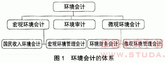 从体系上来讲,环境会计是会计系统的组成部分,可以分成宏观环境会计、微观环境会计和审计三大部分。宏观环境会计又可以分为宏观国民收入环境会计和宏观环境管理会计。主要的目的是为国家级的宏观环境管理活动提供会计信息;微观环境会计又可以分为环境财务会计和环境管理会计,主要的目的是为企业的外部利益关系人和环境决策等环境管理活动提供会计信息。