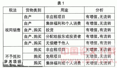 以购买的商品用于非应税项目、免税项目或集体福利或个人消费,购买商品本身不存在新增价值,同时也没有流出本企业,没有留转到其他企业或个人,不存在流转额,依据税法规定,不征增值税。如表1。