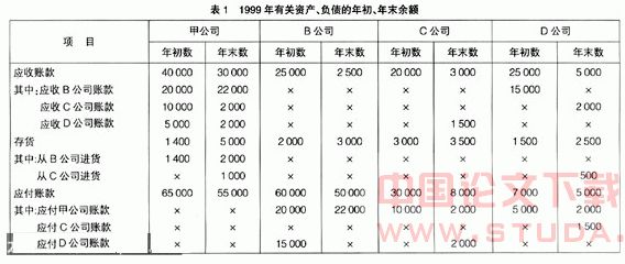 甲公司从1998年开始编制合并会计报表,其对B公司、C公司和D公司的投资占各公司具有投票权股份100%、80%、30%;C公司拥有D公司20%具有投票权的股份。1999年有关资料如表1、表2(单位:元):