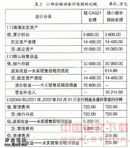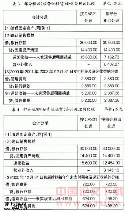 第二,CAS21和IAS17都把售后租回交易分为两类,一是售后租回交易形成经营租赁,二是售后租回交易形成融资租赁。并且从我国的应用指南和2008年注册会计师考试全国统一考试辅导教材《会计》的举例与IAS17附注说明可以看出,我国和国际会计准则理事会更强调对同一资产出售并租回,都没有涉及仅租回一小部分资产或一部分资产时的交易应如何处理。