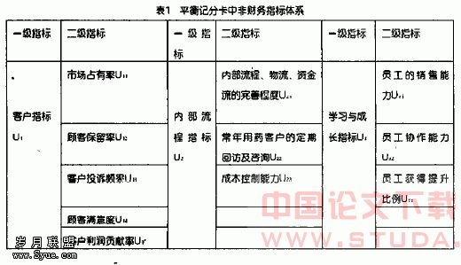 药店绩效风险预警指标体系是根据卡普兰与诺顿的平衡记分卡理论,从财务、顾客、内部业务流程、学习与创新等四个维度所提出的问题入手,在每一方面设计一些特定业绩指标作为监测和控制的指标,并赋予不同的权重,形成一套完整的业绩风险评价指标体系。