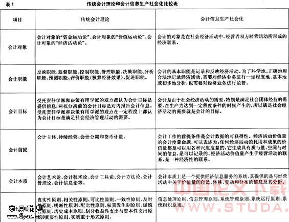 从理论上分析,会计信息生产的社会化模式有着明显的优点,这是因为它可以解决会计信息失真、克服信息不对称等问题,同时可以降低信息生产的费用。表1从六个方面对传统会计理论和会计信息生产社会化进行了比较。