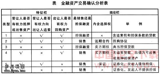 “金融合成分析法”的核心在于控制权决定资产的归属,而且承认金融资产和负债能分割成不同的组成部分。根据这种方法,对一项资产转让交易是否进行销售的会计处理取决于转让者是否放弃了对该资产的控制权,而不是取决于交易的形式。