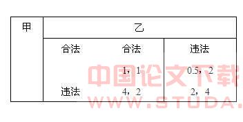 第四,我国的造假普遍,会计信息失真现象严重,同时注册会计师审计很难正常发挥其有效审计监督作用,结果导致很难提供信息需求者所需要的决策相关信息。据资可以按照博弈论的观点来探讨会计舞弊现象:假设,甲、乙两个会计人员在提供会计信息的时候有两种选择,如实做账(合法)、弄虚作假(违法)。两者博弈矩阵如下: