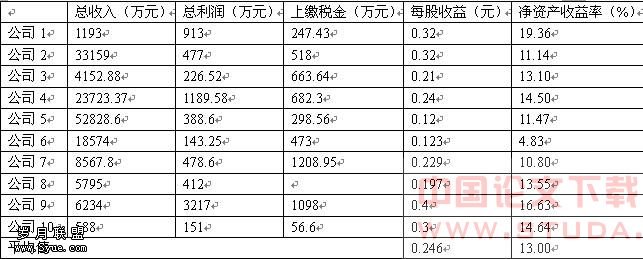 表1 非上市公司职工持股企业净资产收益率和每股收益抽样统计表
